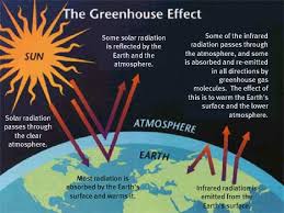 The green house effect is when some infrared radiation passes through the atmosphere and some of the rays are absorbed into the earth and re-emitted in all directions by green house gas molecules and by clouds. The effect of this is to warm the earth’s surface and also the lower atmosphere.  It is mainly caused by a rise in the levels of CO2 in the atmosphere due to the burning of fossil fuels over the last two hundred years. The carbon dioxide and other green house gases trap the heat that reaches Earth from the Sun.